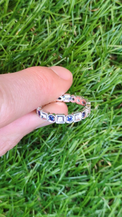 New 0.36ctw Blue Sapphire Diamond Eternity Ring 14k Gold Stackable Wedding Band