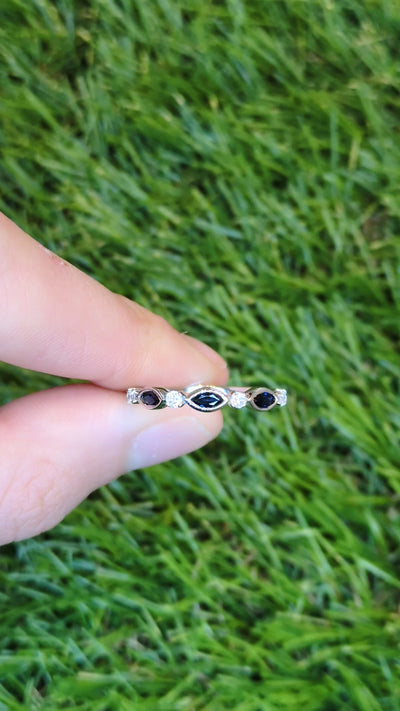 New 0.44ctw Blue Sapphire Diamond Ring 10k White Gold Stackable Wedding Size 7