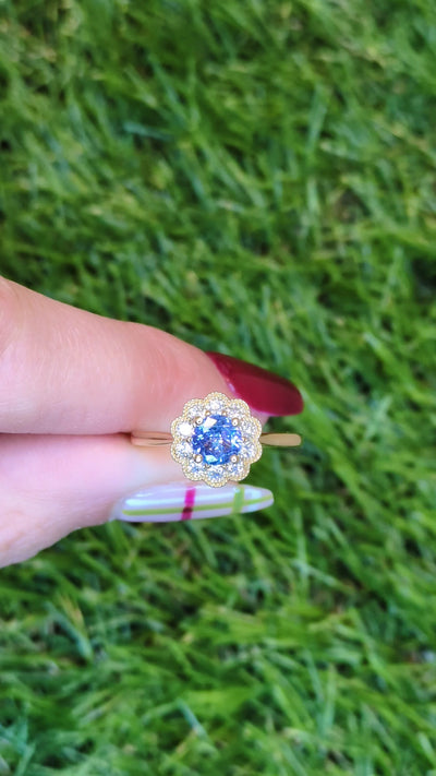 New 1.03ctw Tanzanite Diamond Halo Ring 18k Yellow Gold Size 7.25 Engagement