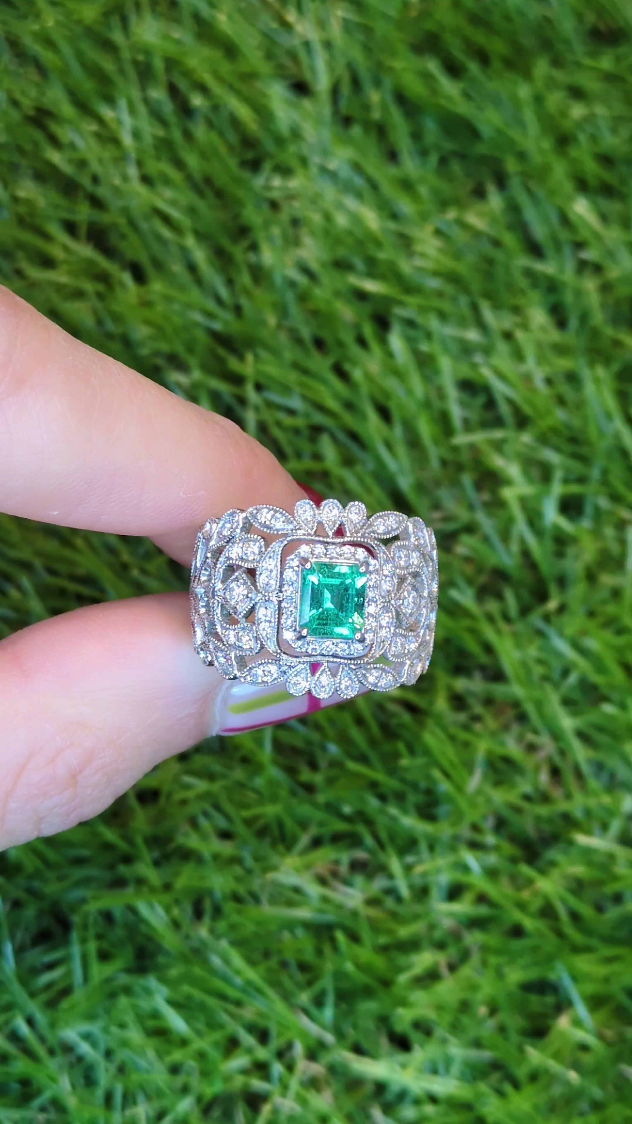 New 1.16ctw Emerald Diamond Cocktail Ring 14k White Gold Size 7