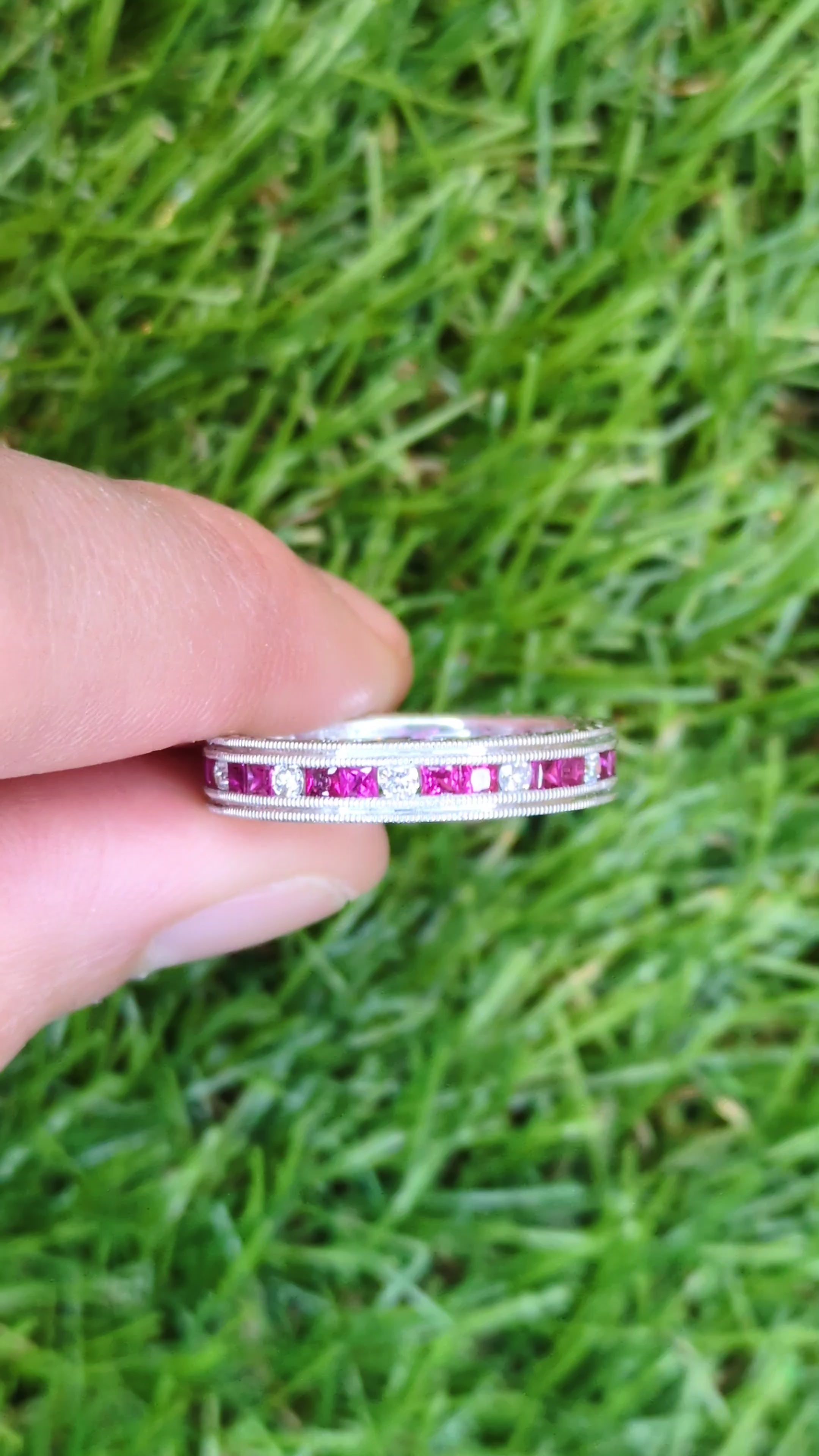 New 1.89ctw Ruby Diamond Eternity Ring Platinum Wedding Band Stackable Size 6.5
