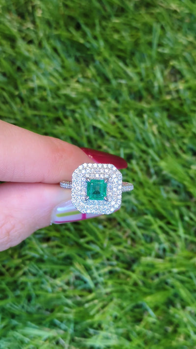 This gorgeous ring comes with a certificate from Jaipur Gemological Lab for the emerald centerpiece.
