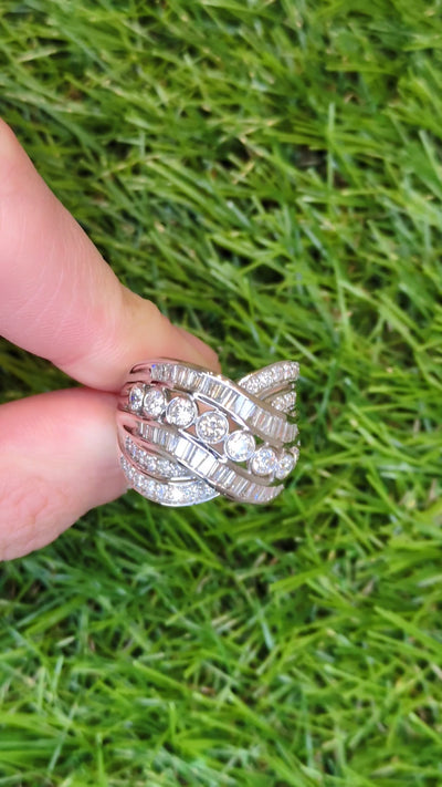 New 2.10ctw Diamond Overlay Ring 14k White Gold Size 7 Cocktail