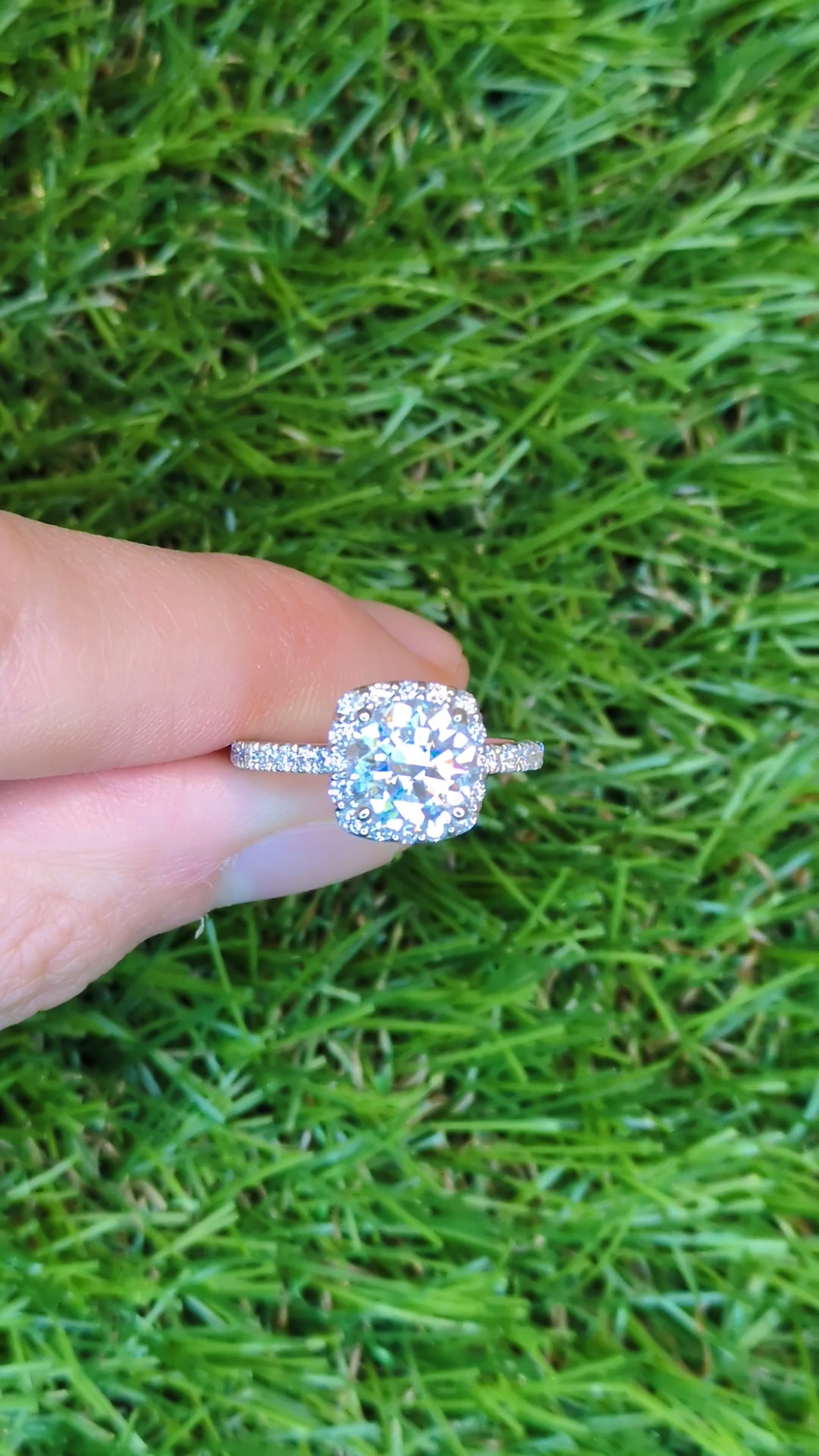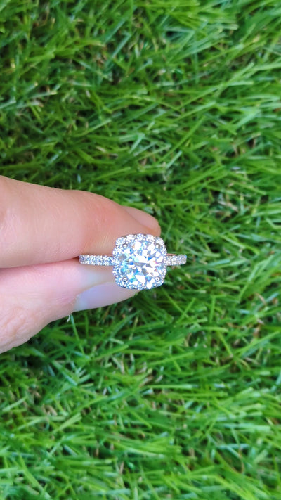 New 2.23ctw Moissanite Diamond Halo Semi Mount Engagement Ring 14k White Gold