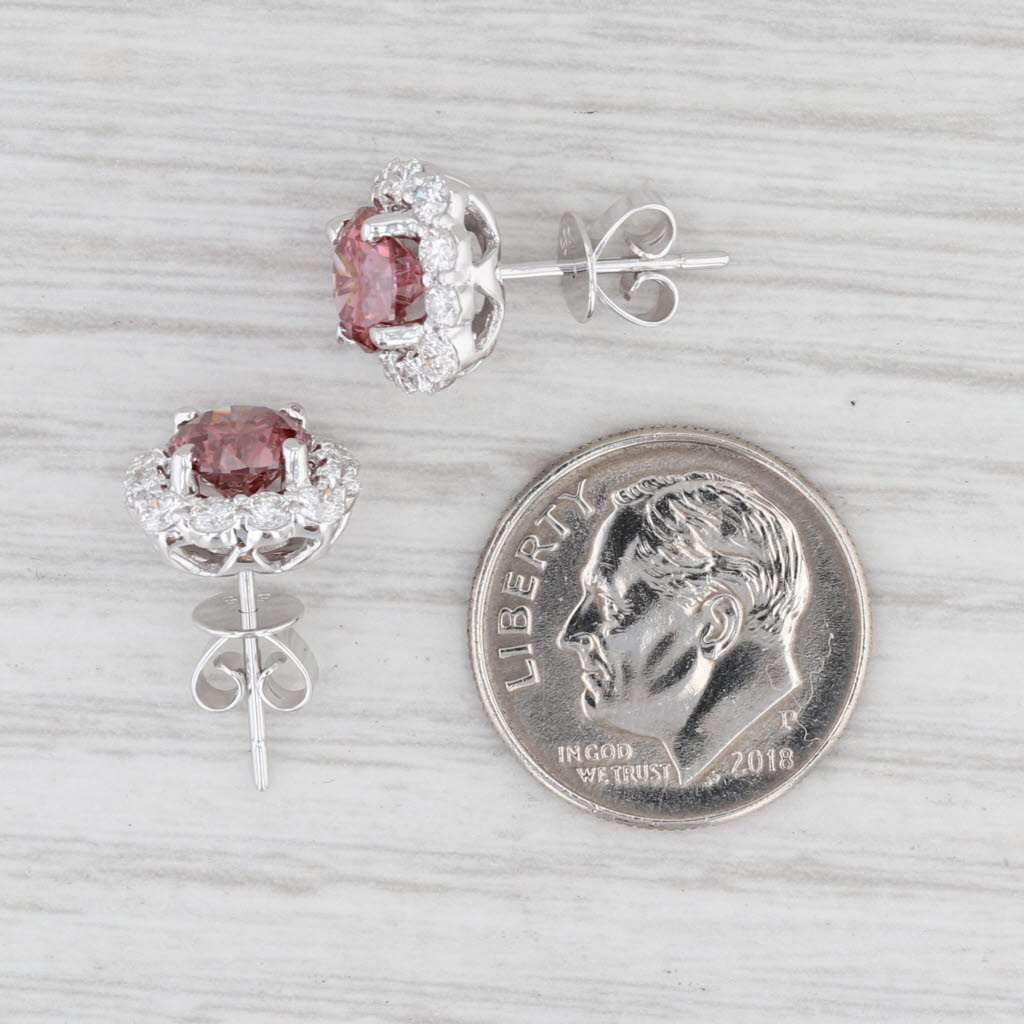 New 2.80ctw Raspberry Pink White Diamond Halo Stud Earrings 14k White Gold