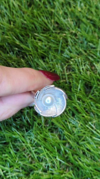 New Bastian Inverun Shell and Sea Cultured Pearl Ring Sterling Silver 12844