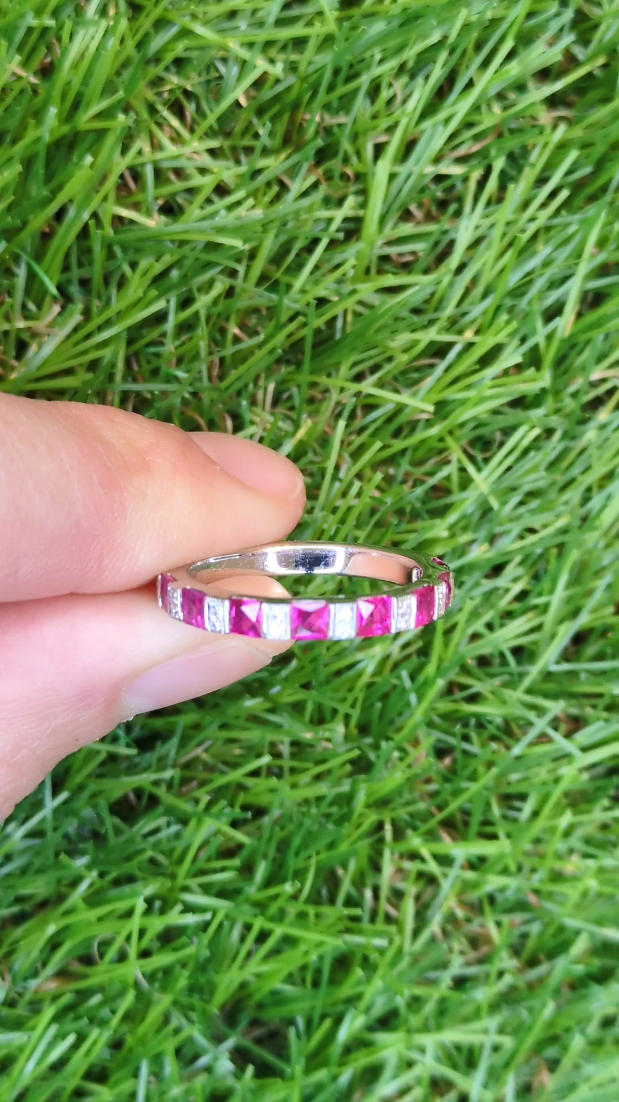 New Beverley K 1.08ctw Ruby Diamond Ring 14k White Gold Size 6.75 Stackable Band