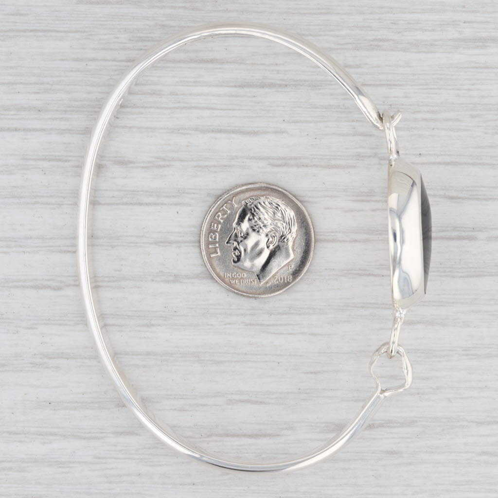 New Black Resin Bangle Bracelet Sterling Silver 925 7" Statement Mexico