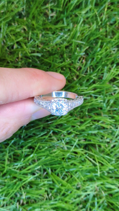 New Diamond Halo Tacori Semi Mount Engagement Ring 18k White Gold Certificate
