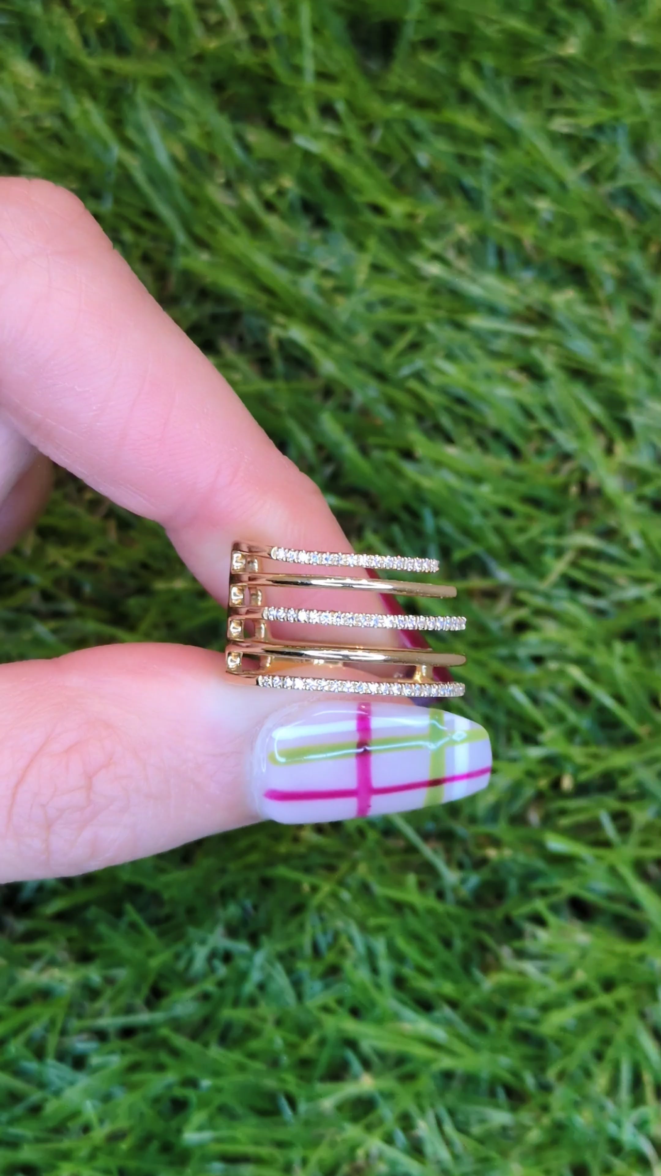 New Layered Diamond Statement Ring 14k Yellow Gold Size 6.5 Stacking