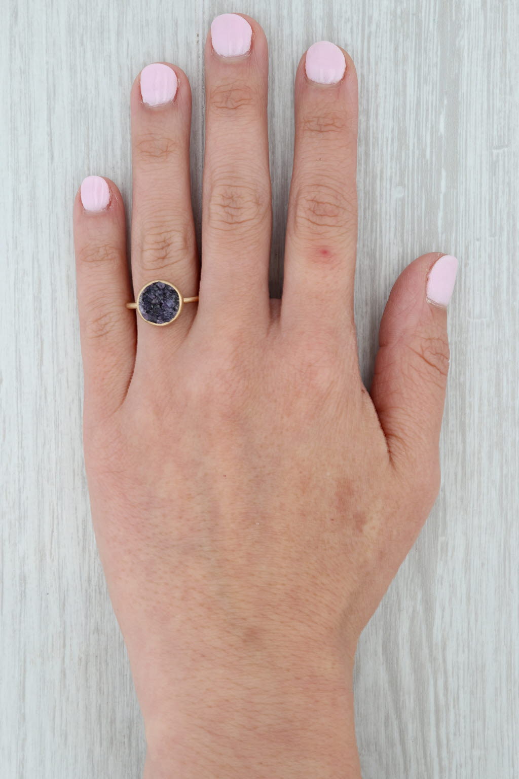New Nina Nguyen Amethyst Druzy Ring Brushed 18k Yellow Gold Size 7 Solitaire