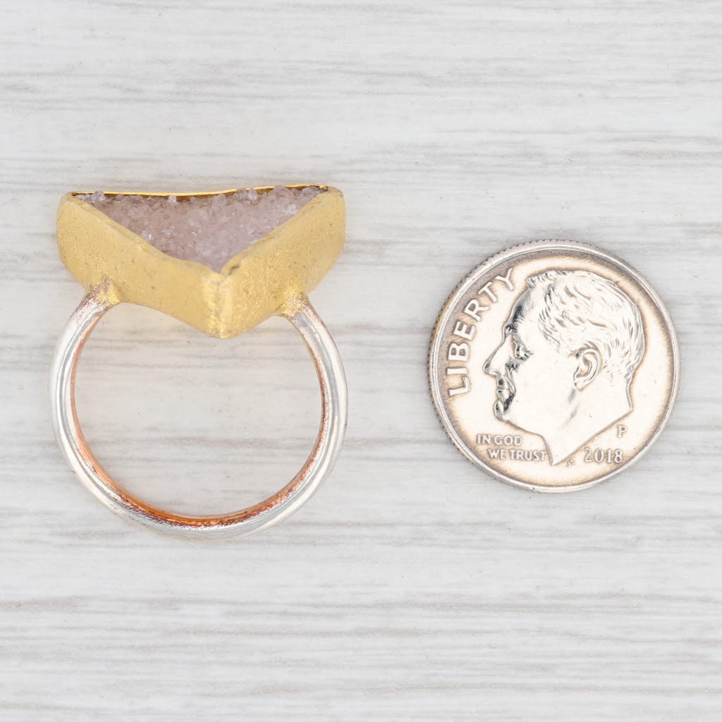 New Nina Nguyen Bamboo Trio Sand Druzy Quartz Ring Sterling Silver 22k Vermeil
