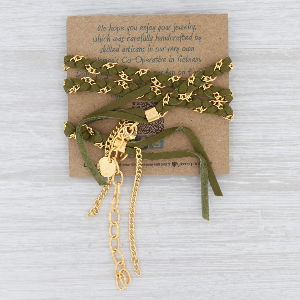 New Nina Nguyen Cordelia Necklace Druzy Geode Woven Green Leather