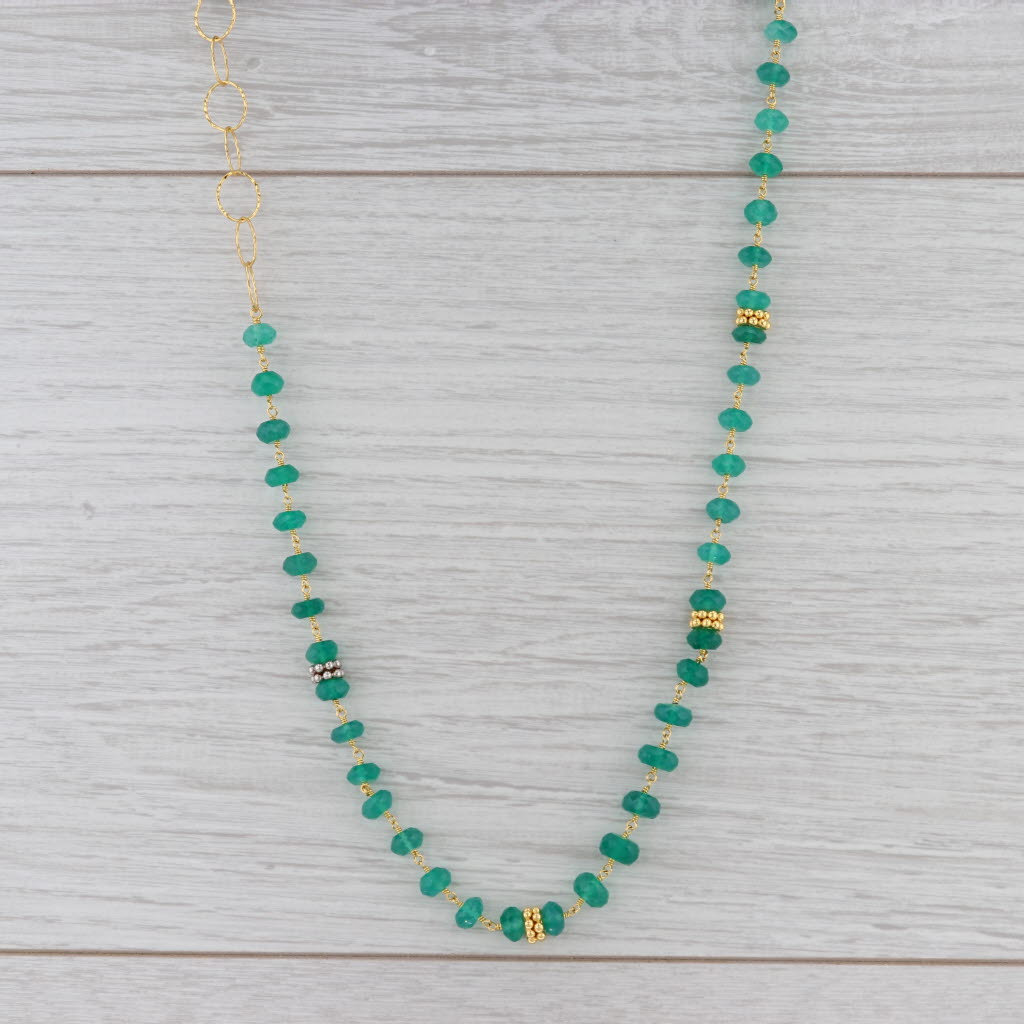 New Nina Nguyen Green Onyx Bead Necklace Melody Chain Sterling Gold Vermeil