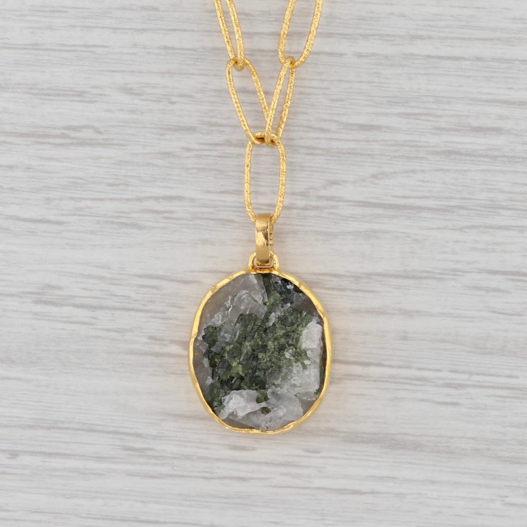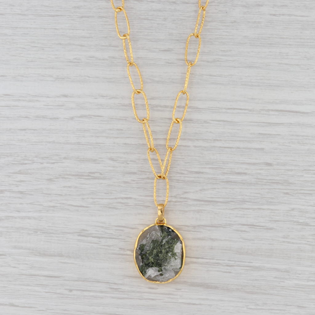 New Nina Nguyen Green Tourmaline Pendant 20" Necklace Sterling Gold Vermeil