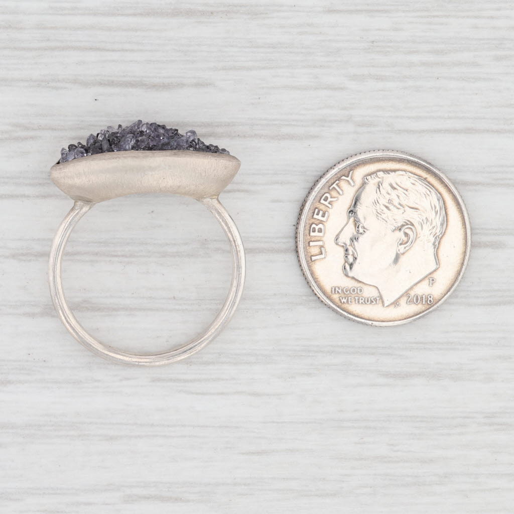 New Nina Nguyen Ring Druzy Amethyst Sterling Silver Gemstone Statement Size 7