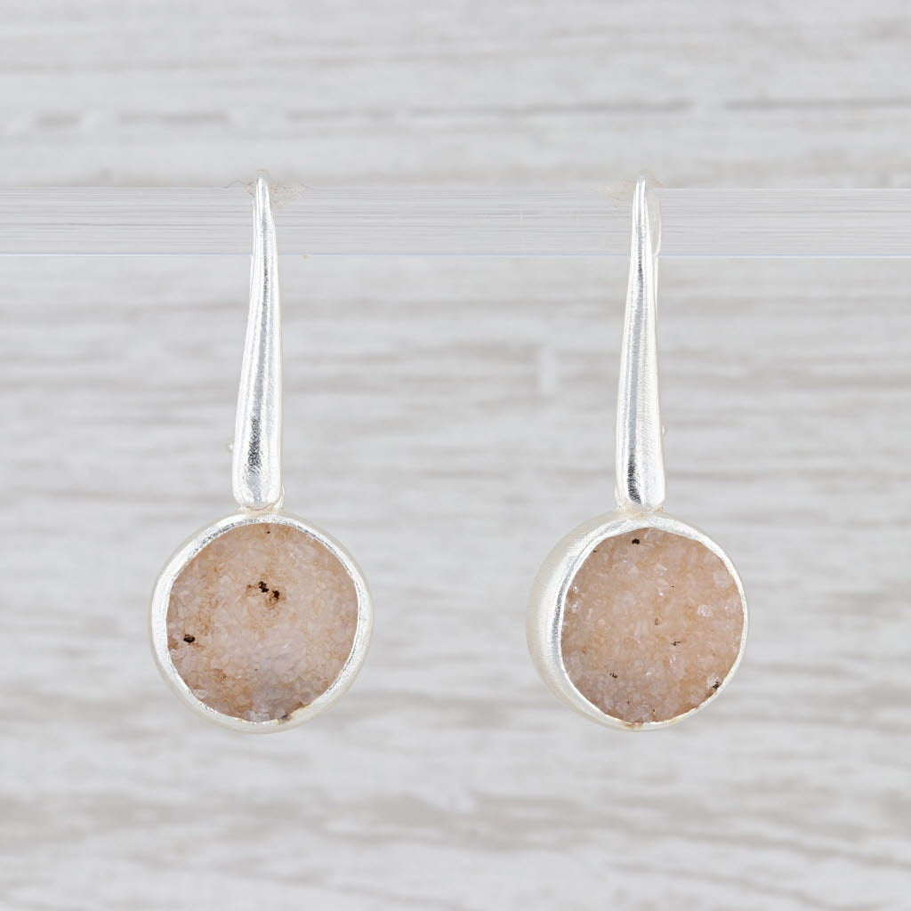 New Nina Nguyen Sand Druzy Quartz Drop Earrings Sterling Silver Hook Posts