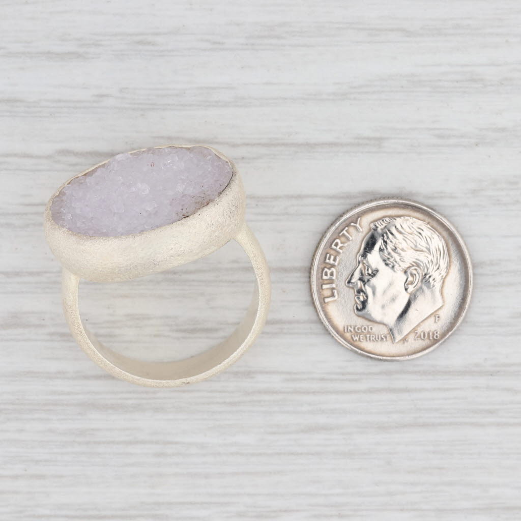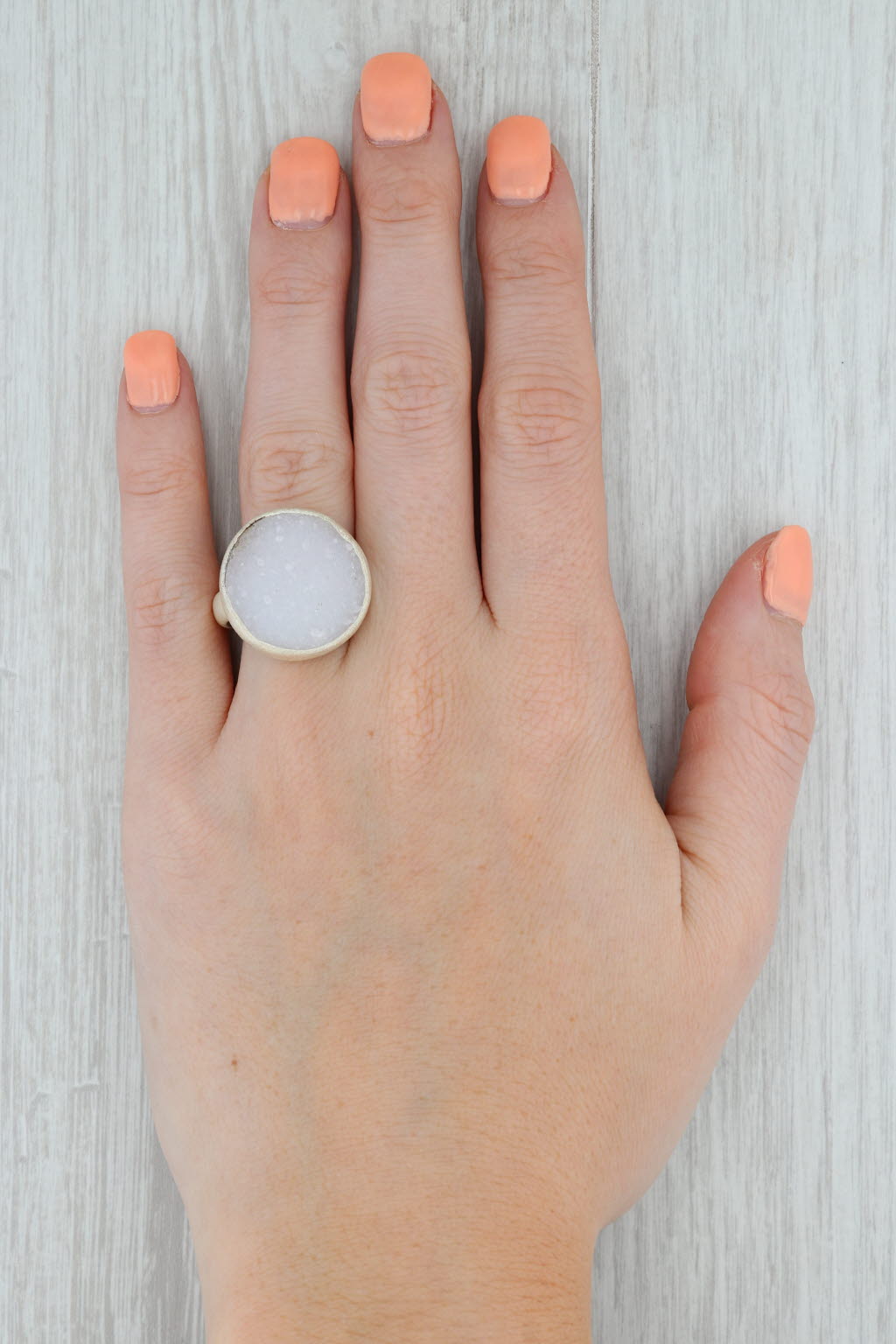 New Nina Nguyen White Druzy Quartz Ring Sterling Silver Size 7.25 Statement