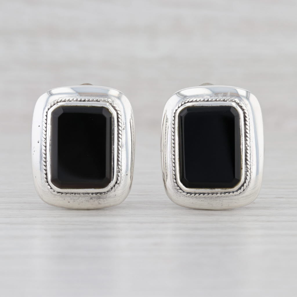 New Onyx Clip On Statement Earrings Sterling Silver Non Pierced Solitaire