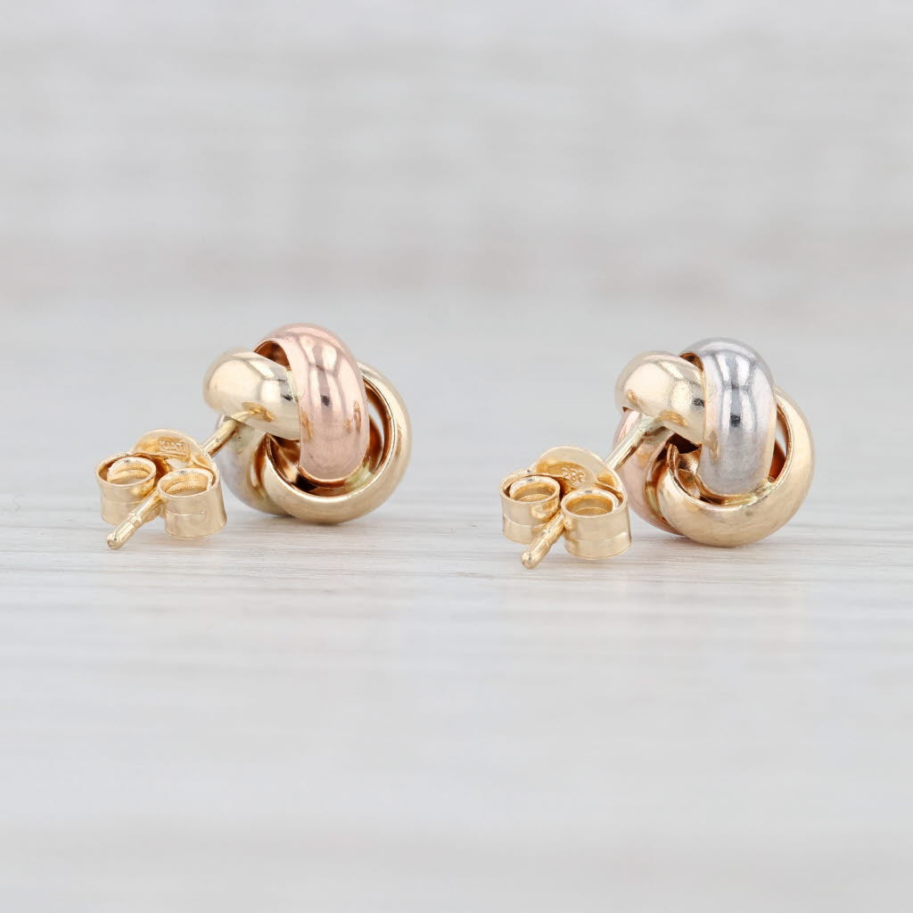 New Tri-Toned Love Knot Earrings 14k Yellow Rose White Gold Pierced Studs