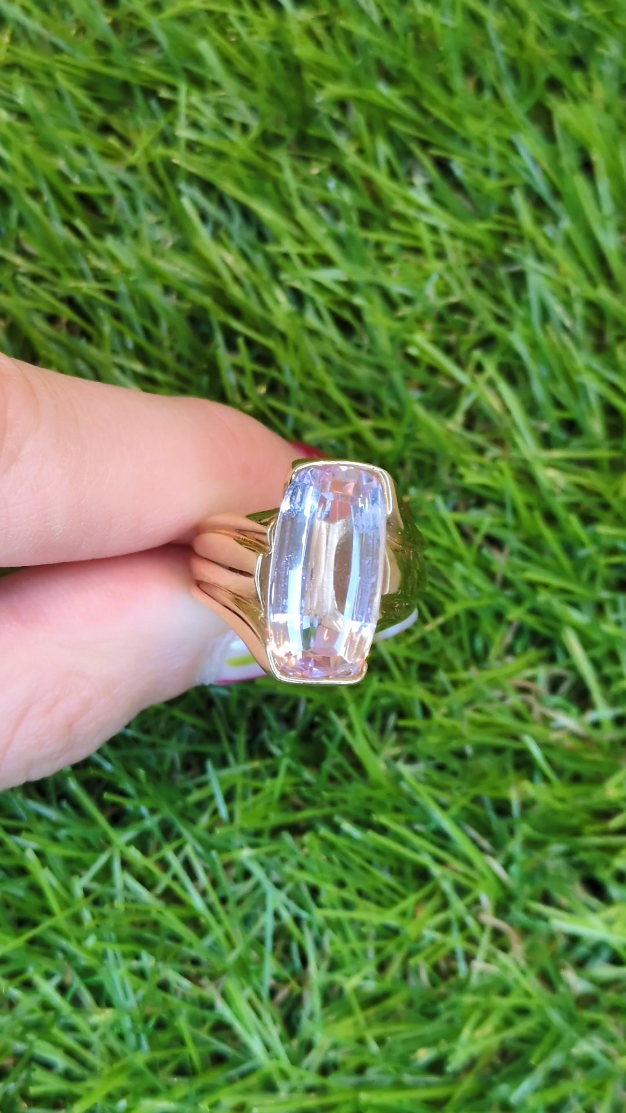 Pink Kunzite Solitaire Ring 14k Yellow Gold Size 5.75 Cocktail