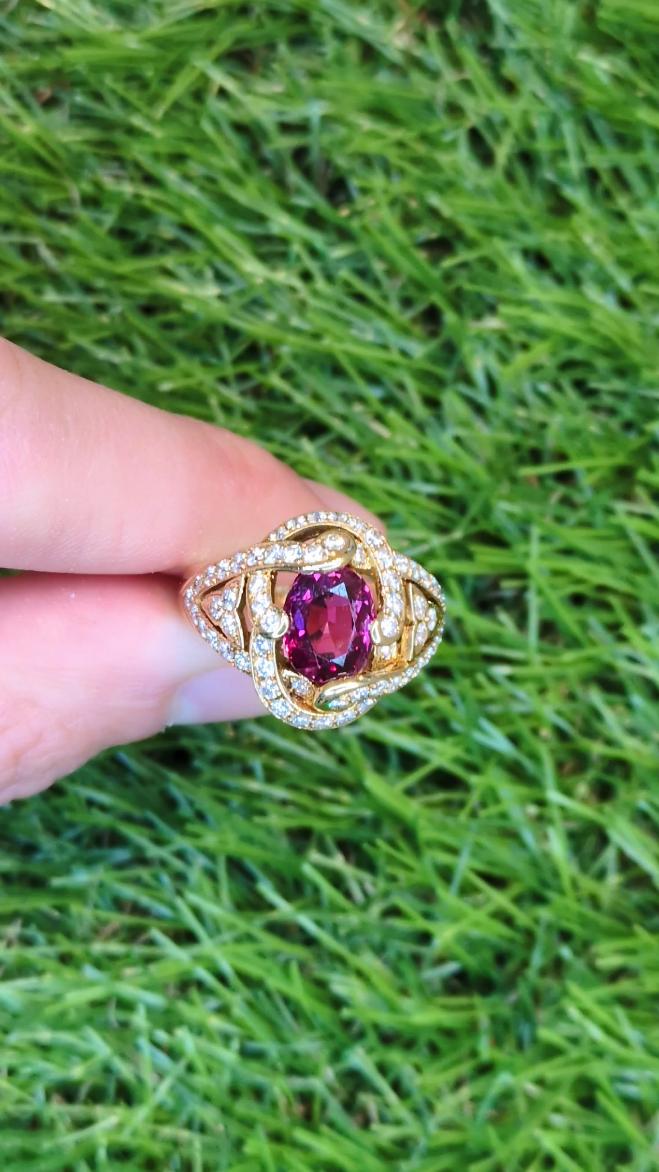 Ruby Diamond Halo Ring 18k Yellow Gold Size 6.25 Engagement Style
