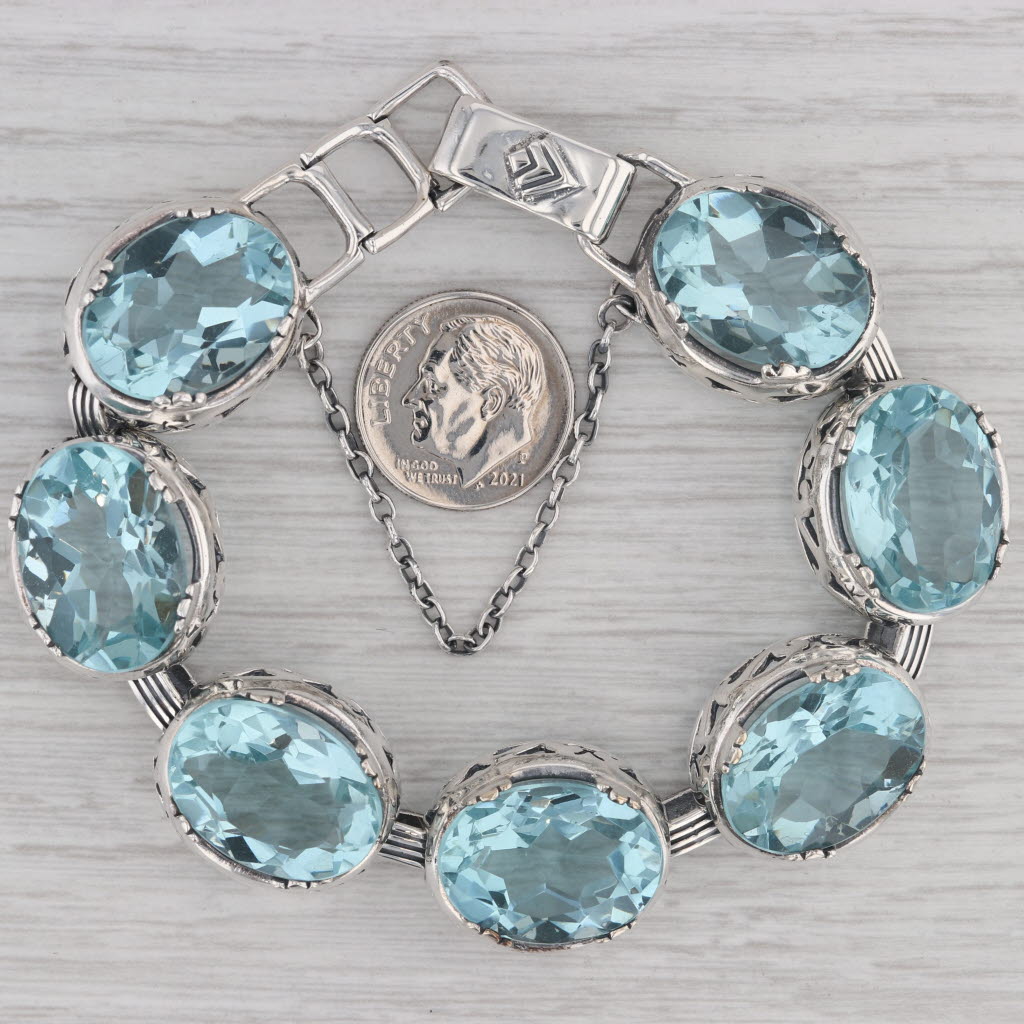Silpada Blue Glass Large Statement Bracelet Sterling Silver B2093 7.5"