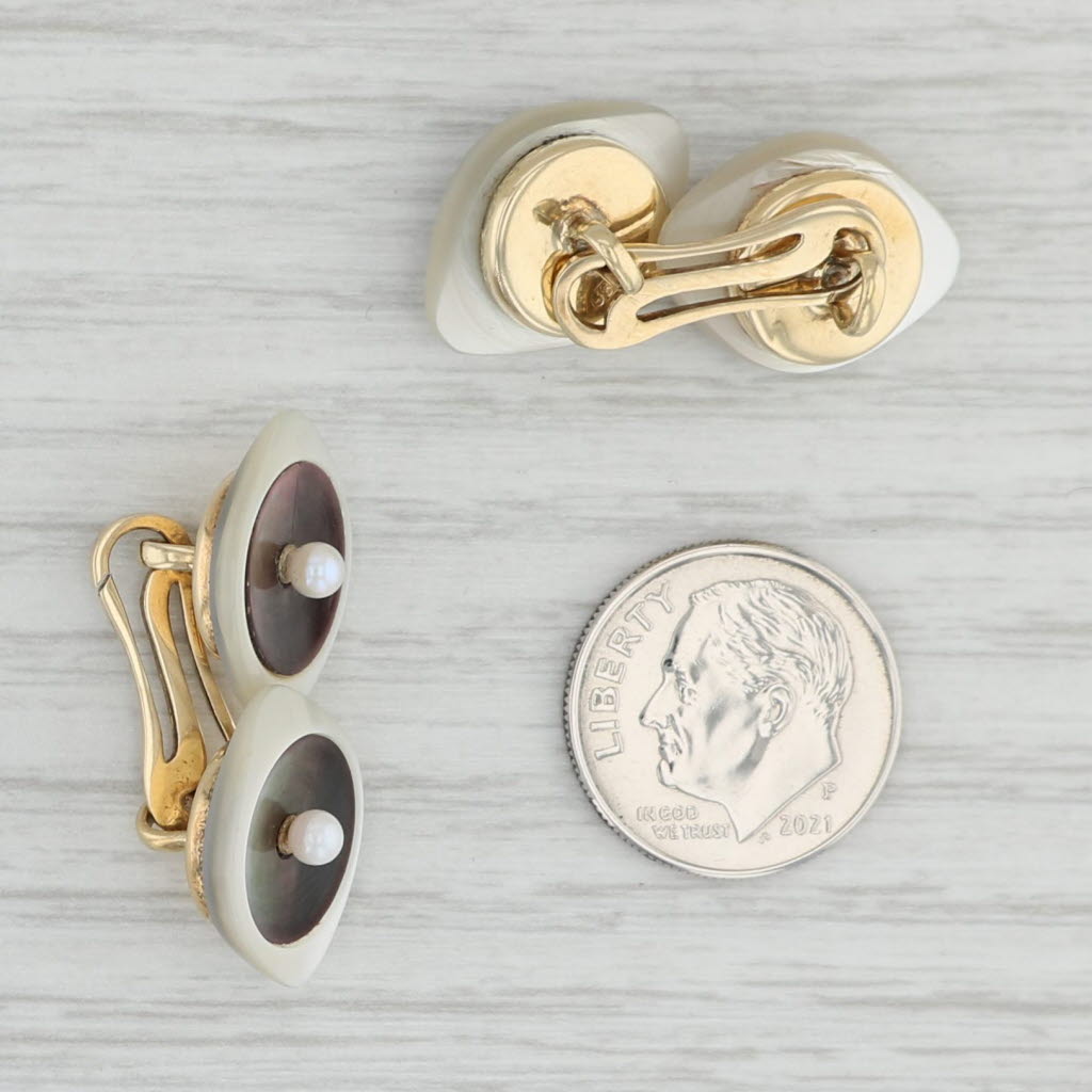 Vintage Cultured Pearl Mother of Pearl Abalone Shell Cufflinks 14k Gold