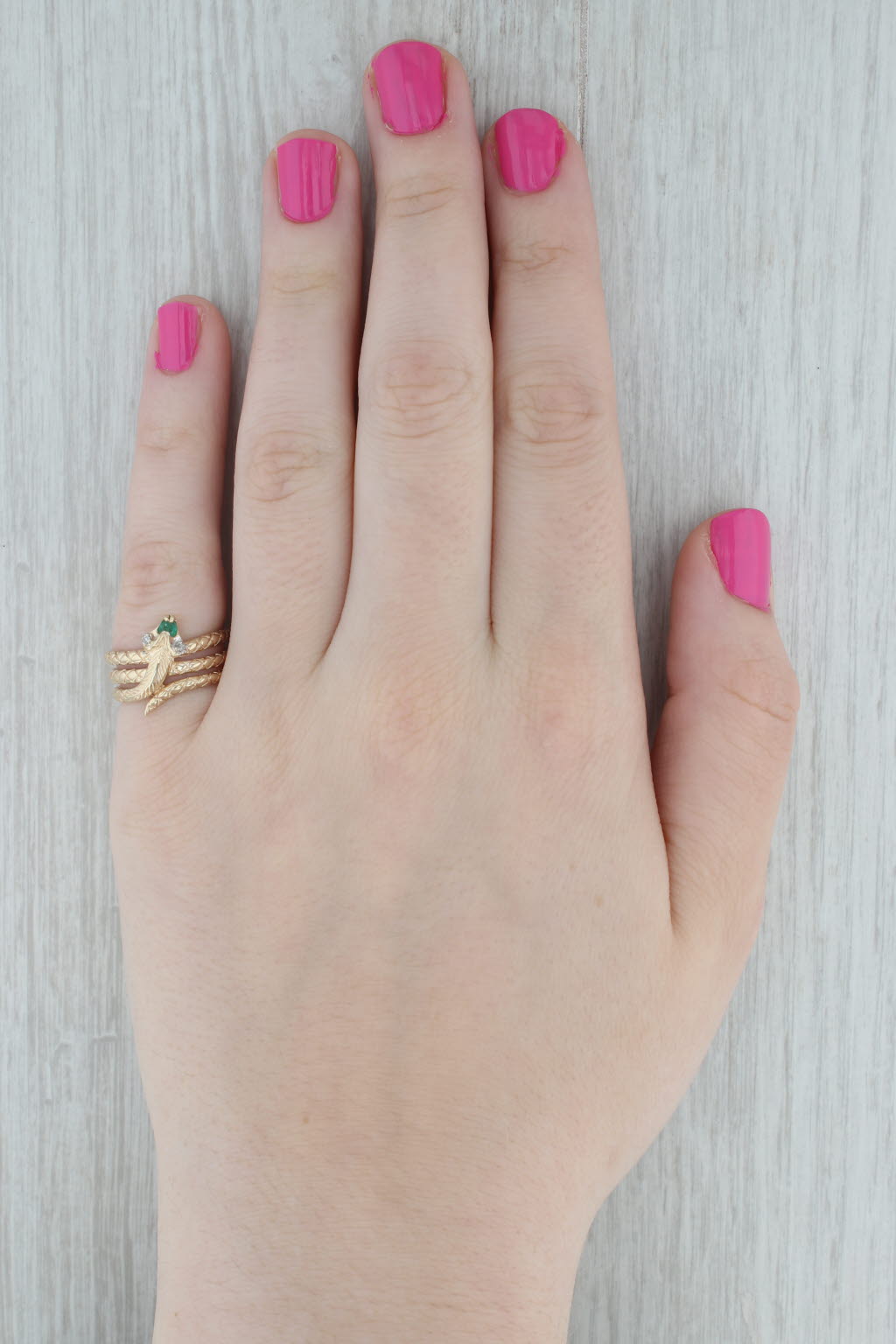 Vintage Richard Klein Coiled Snake Ring Emerald Diamond 10k Yellow Gold Size 6